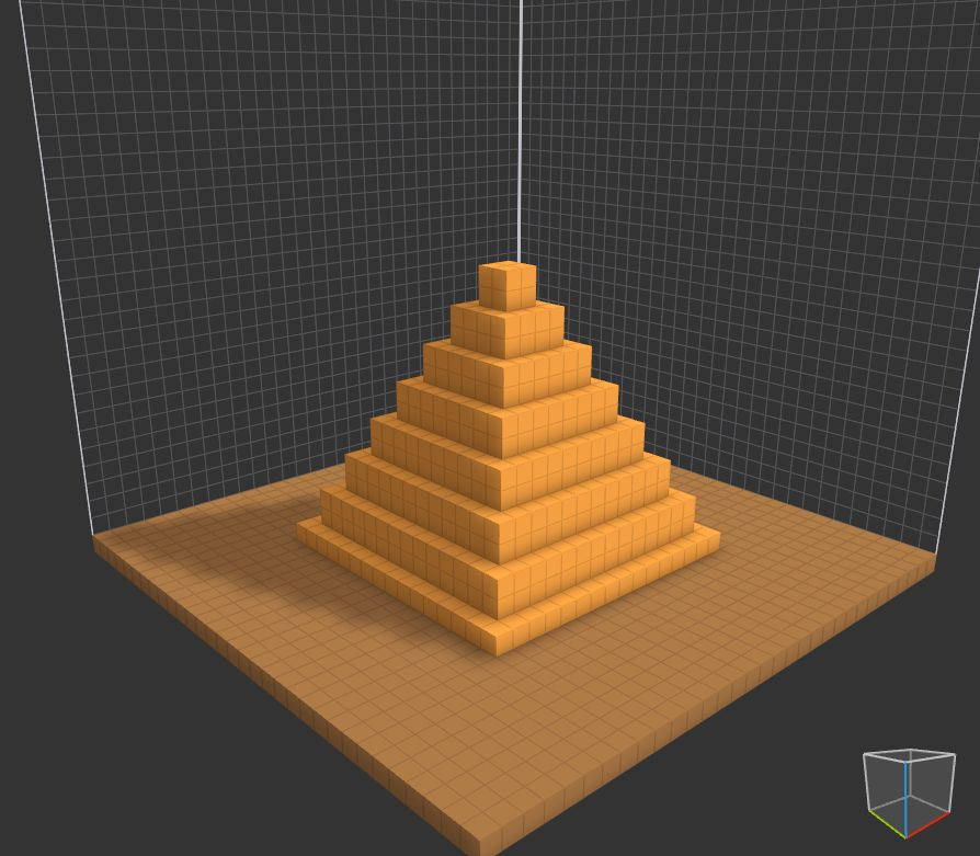 用MagicaVoxel建模(网上搜到的图可能有版权…),下面是正常视角,也就是大多数游客看到金字塔形状。