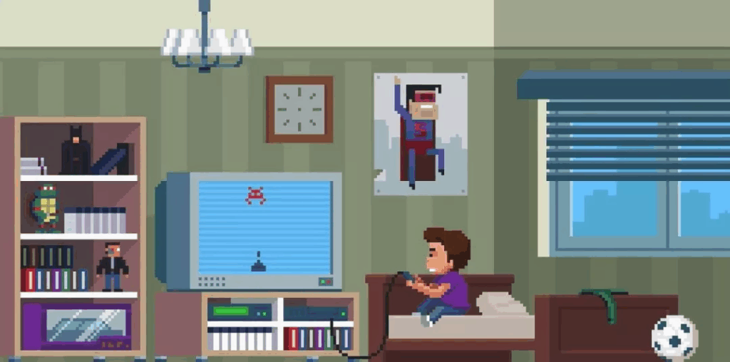 先找面积最大阴影,然后根据阴影的相反方向是光源得出光源位置在右边(右边有一个大窗户)。不过这个图里面的足球,床,角色的暗部在右边,这是为什么呢?唯一合理的解释是电视机本身也是一个光源。